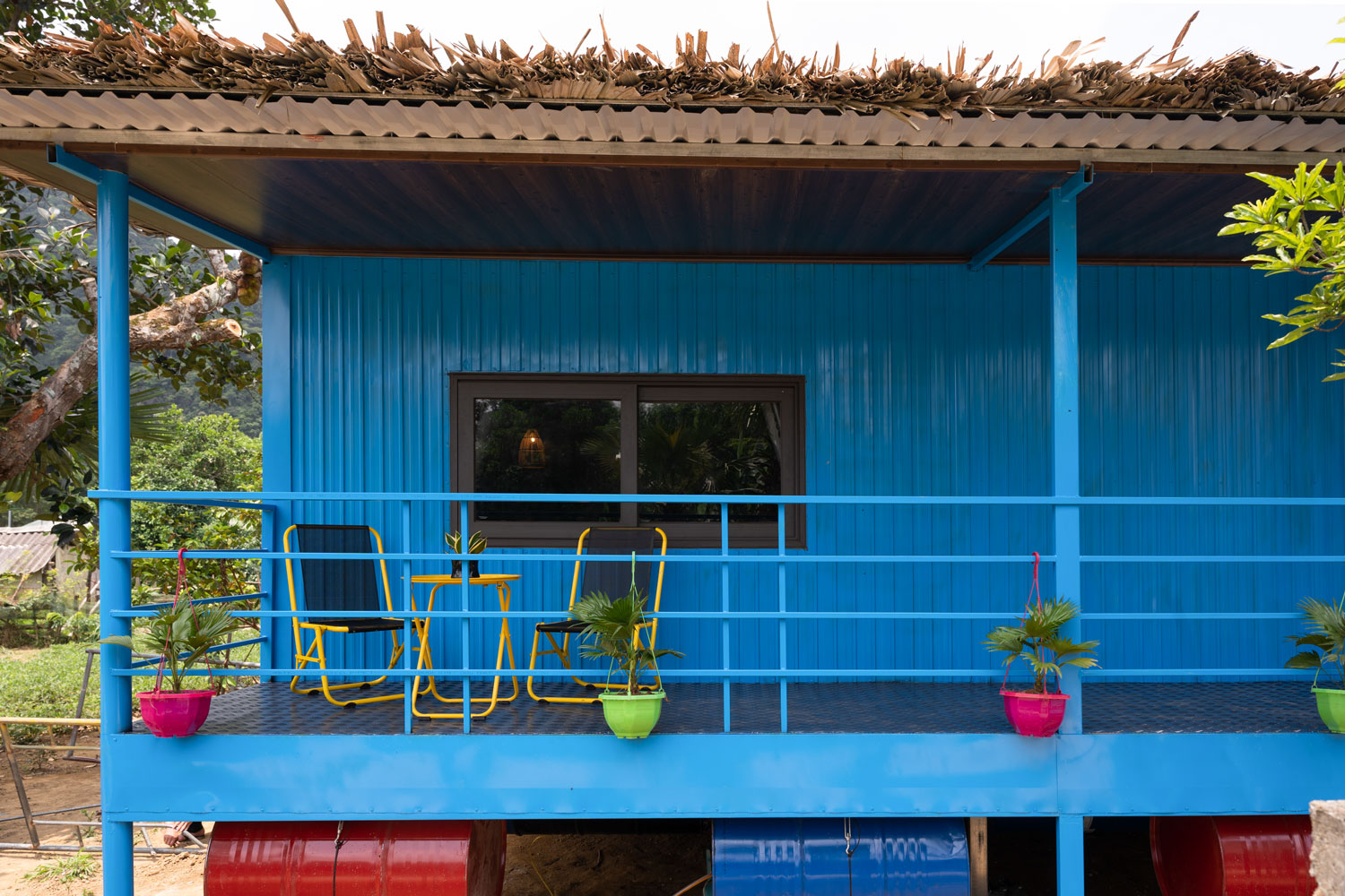 Mô hình homestay độc đáo có thể nổi lên vào mùa mưa nhờ các thùng phuy được lắp bên dưới.