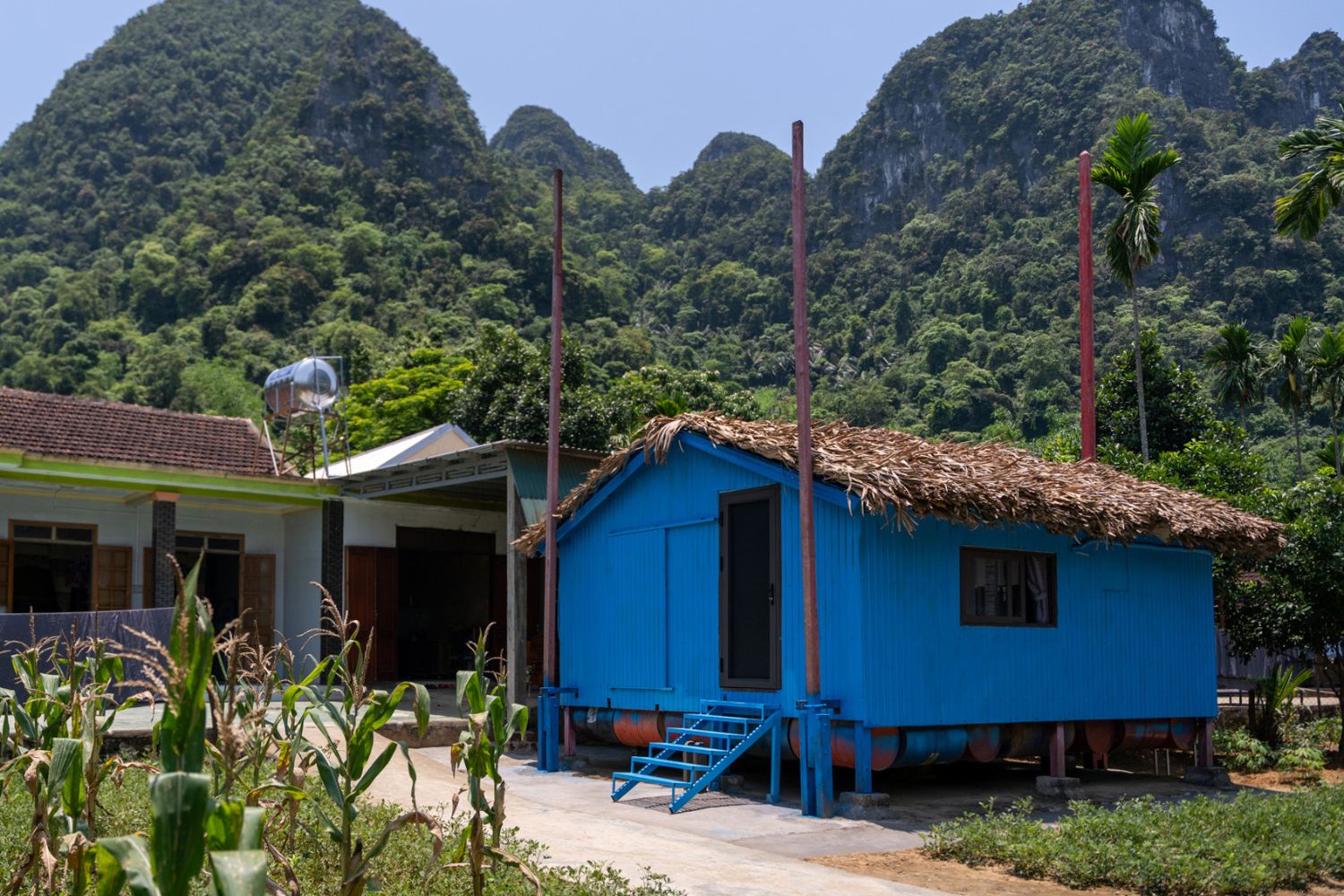 Các căn homestay được xây dựng trong khuôn viên nhà dân và được thiết kế để mang lại trải nghiệm giống như người bản địa. Bao quanh là thung lũng Tân Hóa với cánh đồng cỏ trải dài, từ cửa sổ phòng nhìn ra, không khó để ta bắt gặp những cảnh sắc làng quê yên bình.